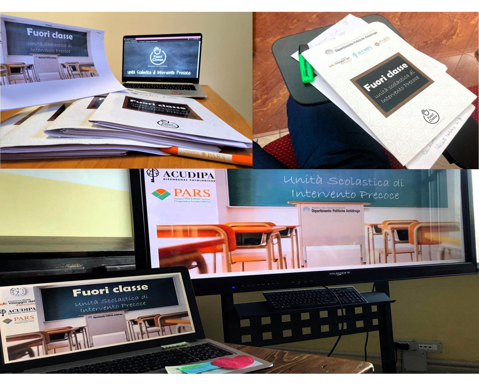 Otto gli istituti secondari di secondo grado delle Marche in cui si è svolto il progetto Fuori Classe: Unità Scolastica di Intervento Precoce. A seguito dell’attivazione di sportelli d’ascolto nelle scuole, è stato possibile osservare come spesso si instaurino delle interazioni umane significative tra studenti e collaboratori scolastici, che hanno quindi modo di osservare più da vicino i comportamenti che i ragazzi mettono in atto quando non sono all’interno dell’aula. Proprio grazie alla rilevazione precoce di segnali a rischio è possibile attivare una rete di opportuni interventi sui casi conclamati di uso di sostanze stupefacenti. Responsabile del progetto per la regione Marche, la dottoressa Nicoletta Capriotti, presidente della Cooperativa sociale Pars, Civitanova Marche (MC). Gli incontri formativi sono stati svolti dalla dottoressa Irene Costantini, psicologa e psicoterapeuta, coordinatrice territoriale del progetto.
